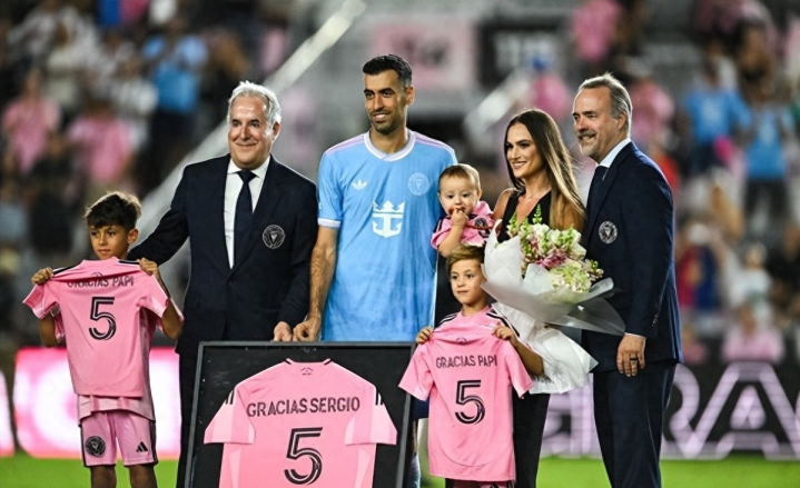 现年37岁的布斯克茨(Sergio Busquets)获的国际迈阿密颁发给他的纪念球衣,作为他退役仪式一部分,而他的家人也是获邀出席,包括他的太太及三名孩子。布斯克茨在退役仪式上称,他未来会向主教练的生涯发展,但赛季后先是放一个长假,好好休息。