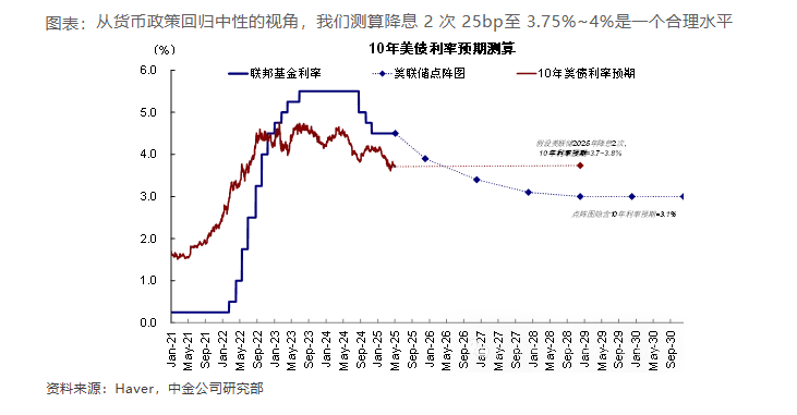 基准情形下,中金预计美联储年内可能降息1至2次,将政策利率降至3.75%至4%的区间。
