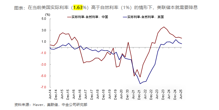 首先,美联储本身存在降息的内在需求。数据显示,当前美国1.63%的实际利率显著高于约1%的自然利率,这意味着货币政策对经济构成了限制。同时,经济增长和就业市场已出现“温和走弱”的迹象。尽管美国第二季度GDP环比年化增速达到3%,好于预期,但若剔除关税导致的进出口和库存波动,过去两个季度的平均增速仅为1.5%左右,显示底层增长动能确实在放缓。